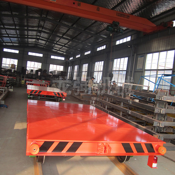 KPX平車主要特點:1、電動平車鋼結構采用箱梁結構;2、該系列電動平車臺面變形小;3、電動平車具有起重機吊裝位置;4、車啟動緩慢加速啟動;5、電動平車可實現爬坡的能力;6、電動平車由蓄電池供電。7、該平車具有對運行距離大等優點;8、KPX平車直流電機有啟動平穩、啟動力矩大、對減速機沖擊小、電壓低等優點;9、具備機動性平車能夠在S型軌道、弧形軌道及高溫場合使用;10、可實現緩慢加速啟動和緩慢減速停止,也可根據具體需求添加裝置等進行非標生產。此系列軌道平板車可實現頻繁啟動和停止的,運行距離沒有限制,選用的電器具有調速、過流等功能,同時可選配隨車隨行操作、固定操作、無線遙控等。